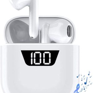Wireless Earbuds Bluetooth 5.0 Headphones with Charging Case Noise Cancelling 3D Stereo Headsets Built in Mic in Ear Ear Buds IPX5 Waterproof Air Buds for iPhone/Android&Power Display… (White)