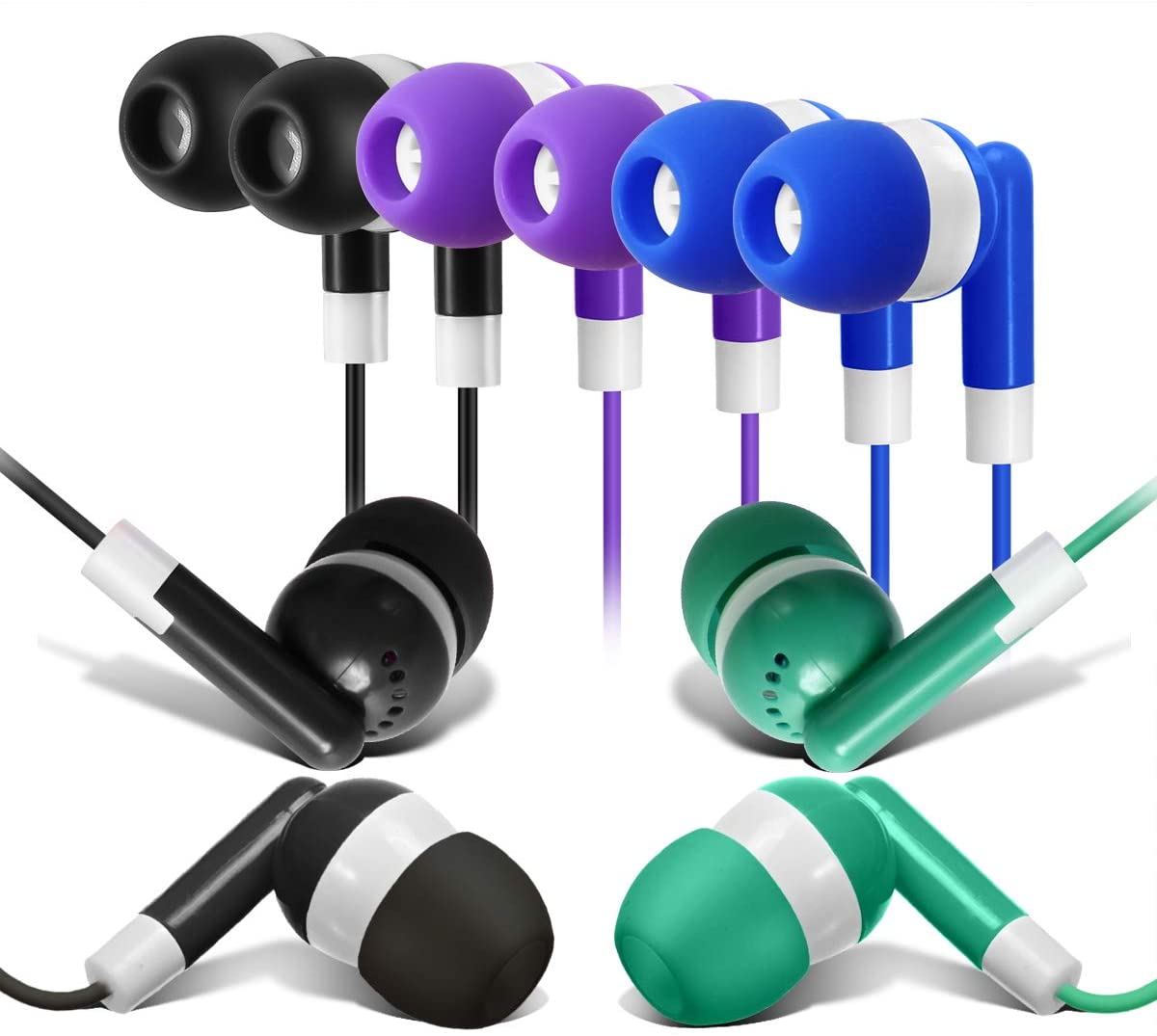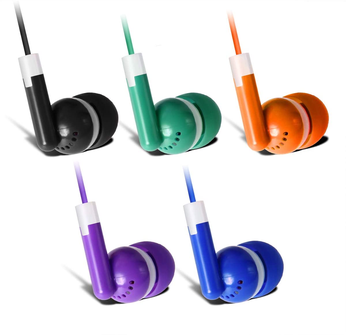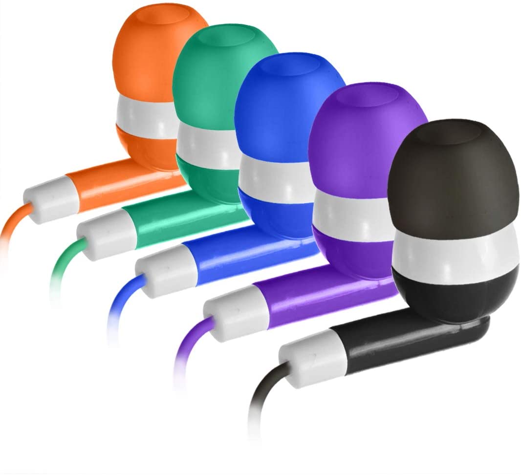 Bulk Earbuds Headphones 100 Pack Earphones- Keewonda Wholesale Classroom Ear Buds Kids Bulk Headphones Mixed 5 Assorted Colors Earbuds for Schools, Libraries, Hospitals (Mixed-Color) quantity