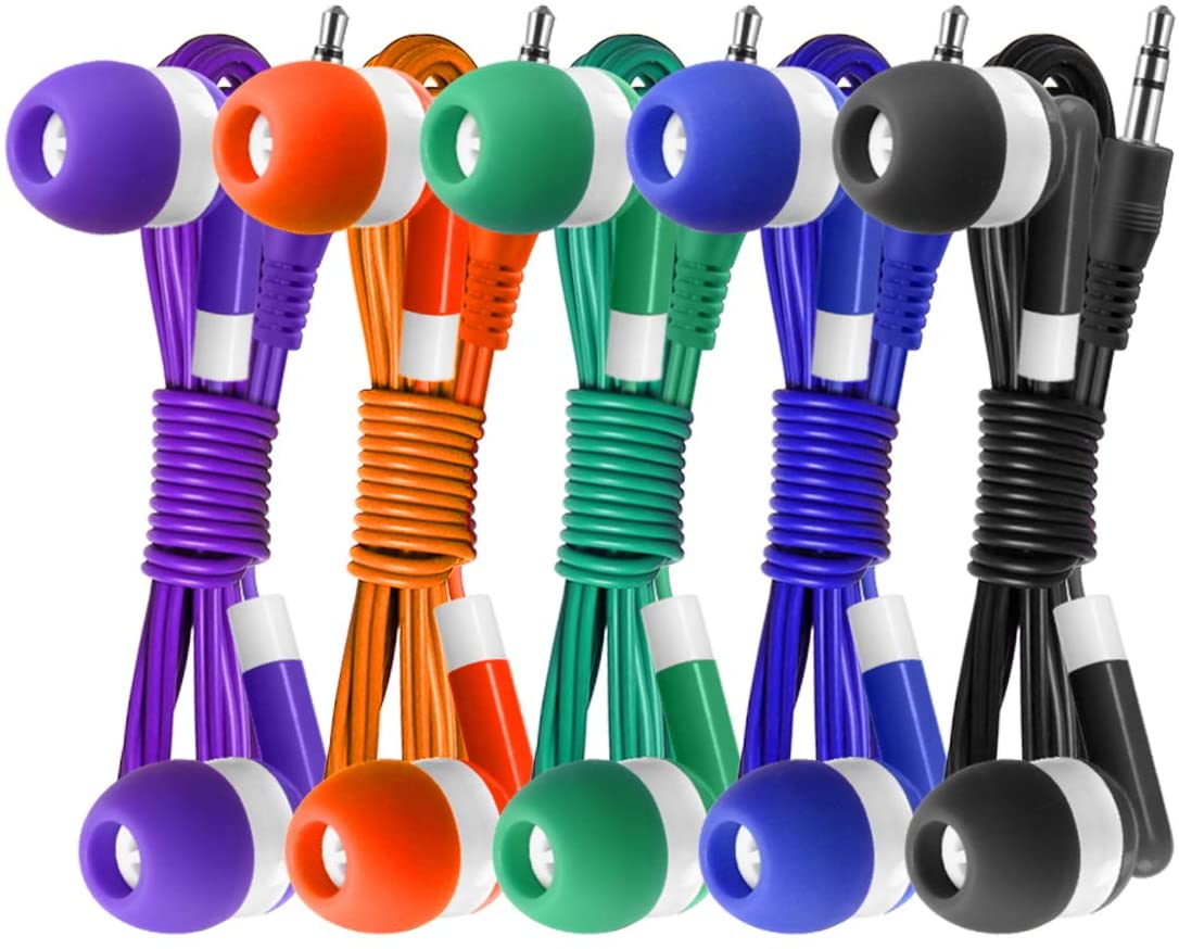 Bulk Earbuds Headphones 100 Pack Earphones- Keewonda Wholesale Classroom Ear Buds Kids Bulk Headphones Mixed 5 Assorted Colors Earbuds for Schools, Libraries, Hospitals (Mixed-Color)