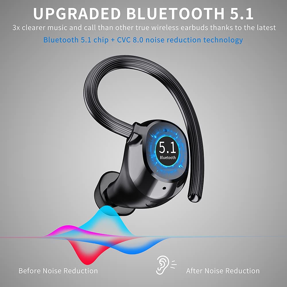 Wireless Earbud, Sport Bluetooth 5.1 Headphones Wireless Earphones in Ear Noise Cancelling Bluetooth Earbud with Mic, IP7 Waterproof 48H Deep Bass Sports Earhooks for Running Workout Gym[2021 New]