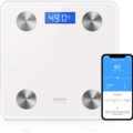 Leaone Body Fat Scale 28x28cm, Blue LCD Display, Smart Bluetooth Digital BMI Weight Scale, Body Composition Analyzer Health Monitor with 6mm Tempered Glass with Smartphone App, 400 lbs, White